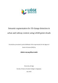 [en] The analysis of 3D changes in complex environments, such as urban and railway infrastructures, is essential for applications including digital twins, infrastructure monitoring, and land management. While multi-temporal point clouds provide rich spatial and temporal information, their unstructured nature, lack of semantics, and acquisition inconsistencies make automated change detection a challenging task. This thesis addresses these challenges by proposing a comprehensive object-based framework that integrates semantic segmentation, change indicators, and structured modeling to improve the reliability, interpretability, and interoperability of 3D change detection.
