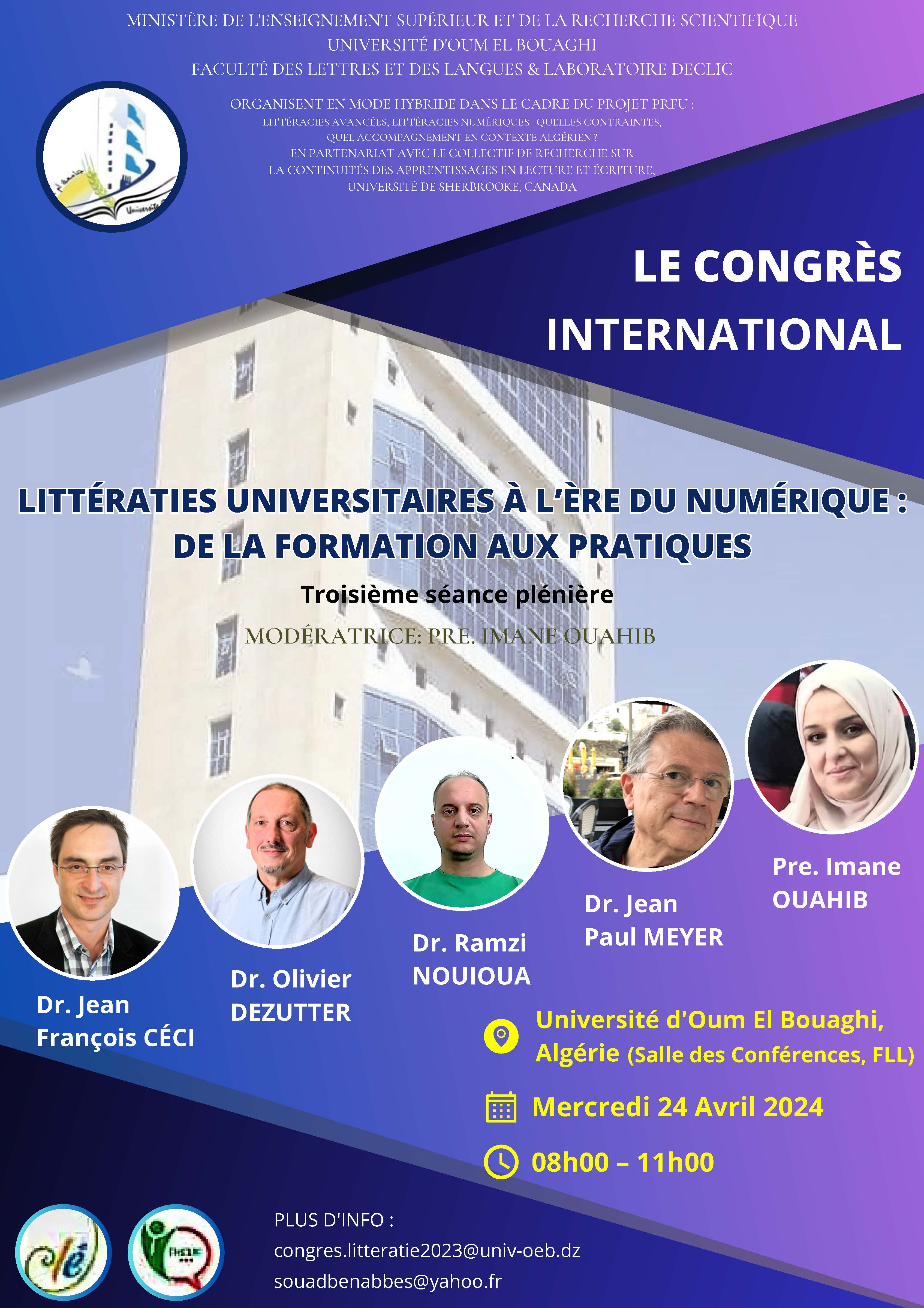 Congrès international : Littéracies avancées, littéracies numériques : quelles contraintes, quel accompagnement en contexte algérien ?
