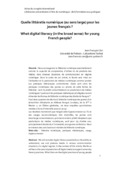 [en] We will essentially consider digital literacy as the ability to understand, use, and produce media in various communication situations in a digital environment. This article will focus on the use and production of digital media as a support for academic literacy practices. What are the digital practices of young people through the prism of this form of literacy: are they consumers or producers of digital media? What are the preferred media practices that fuel the forms of digital literacy of French students?
