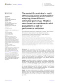 The varied Q creatinine in multi ethnics population and impact of adopting three different estimated glomerular filtration rates based on creatinine in adult populations: a call for performance validation.