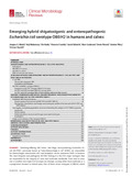 [en] Attaching-effacing (AE) lesion- and Shiga toxin-producing Escherichia (E.) coli (AE-STEC), previously known as "enterohemorrhagic E. coli" (EHEC), are responsible for (hemorrhagic) enterocolitis (HC) and hemolytic uremic syndrome (HUS) in humans. The most frequent and pathogenic AE-STEC belong to a few O:H major serotypes that are responsible for the majority of cases and outbreaks worldwide. From time to time, one or another non-major O:H serotype can emerge, causing either local outbreaks or a a progressive increase in clinical cases. One of these minor serotypes is O80:H2, which has been progressively emerging in Western Europe, especially in France, since 2010. AE-STEC O80:H2 are responsible for not only HC and HUS but also invasive infections with bacteremia and internal organ infection. In parallel to their emergence in humans, AE-STEC and enteropathogenic E. coli (EPEC) O80:H2 have also been emerging in young calves suffering diarrhea and enteritis and, more rarely septicemia, in Belgium since 2009. In this manuscript, an overview of AE-STEC and EPEC O80:H2 infections in humans and calves is presented, with particular focus on the clinical manifestations, the prevalence and incidence in Western Europe, and the identification of the potential reservoir(s). In addition, the results of a large-scale whole genome-based phylogenetic analysis of 417 published and unpublished genome sequences currently available in the literature and in the NCBI and EnteroBase databases are presented with hypotheses on the origin and evolution of this new hybrid AE-STEC and EPEC serotype.