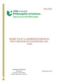 HENRY VII ET LA REPRÉSENTATION DU POUVOIR DURANT SON RÈGNE (1485-1509)