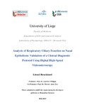 [en] Primary ciliary dyskinesia (PCD) is a rare genetic disorder that affects motile cilia, leading to chronic respiratory issues. Diagnosing PCD remains difficult due to the lack of a definitive test, requiring a combination of clinical evaluation and various diagnostic tools such as genetic analysis, nasal nitric oxide measurement, and high-speed video microscopy (DHSV). However, DHSV is not yet recognized as a standalone diagnostic method due to the lack of standardized protocols and reliable reference values.