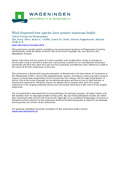 [en] Aim: We test the hypothesis that wind dispersal is more common among emergent tree species given that being tall increases the likelihood of effective seed dispersal. Location: Americas, Africa and the Asia-Pacific. Time period: 1970–2020. Major taxa studied: Gymnosperms and Angiosperms. Methods: We used a dataset consisting of tree inventories from 2821 plots across three biogeographic regions (Americas, Africa and Asia-Pacific), including dry and wet forests, to determine the maximum height and dispersal strategy of 5314 tree species. A web search was used to determine whether species were wind-dispersed. We compared differences in tree species maximum height between biogeographic regions and examined the relationship between species maximum height and wind dispersal using logistic regression. We also tested whether emergent tree species, that is species with at least one individual taller than the 95% height percentile in one or more plots, were disproportionally wind-dispersed in dry and wet forests within each biogeographic region. Results: Our dataset provides maximum height values for 5314 tree species, of which more than half (2914) had no record of this trait in existing global databases. We found that, on average, tree species in the Americas have lower maximum heights compared to those in Africa and the Asia Pacific. The probability of wind dispersal increased significantly with tree species maximum height and was significantly higher among emergent than non-emergent tree species in both dry and wet forests in all three biogeographic regions. Main conclusion: Wind dispersal is more prevalent in tall, emergent tree species than in non-emergent species and may thus be an important factor in the evolution of tree species maximum height. By providing the most comprehensive dataset so far of tree species maximum height and wind dispersal strategies, this study paves the way for advancing our understanding of the eco-evolutionary drivers of tree size.