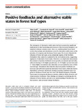 [en] The emergence of alternative stable states in forest systems has significant implications for the functioning and structure of the terrestrial biosphere, yet empirical evidence remains scarce. Here, we combine global forest biodiversity observations and simulations to test for alternative stable states in the presence of evergreen and deciduous forest types. We reveal a bimodal distribution of forest leaf types across temperate regions of the Northern Hemisphere that cannot be explained by the environment alone, suggesting signatures of alternative forest states. Moreover, we empirically demonstrate the existence of positive feedbacks in tree growth, recruitment and mortality, with trees having 4-43% higher growth rates, 14-17% higher survival rates and 4-7 times higher recruitment rates when they are surrounded by trees of their own leaf type. Simulations show that the observed positive feedbacks are necessary and sufficient to generate alternative forest states, which also lead to dependency on history (hysteresis) during ecosystem transition from evergreen to deciduous forests and vice versa. We identify hotspots of bistable forest types in evergreen-deciduous ecotones, which are likely driven by soil-related positive feedbacks. These findings are integral to predicting the distribution of forest biomes, and aid to our understanding of biodiversity, carbon turnover, and terrestrial climate feedbacks.