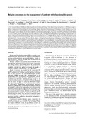 [en] Background: Functional dyspepsia (FD) is a disorder of gutbrain interaction characterised by epigastric pain, epigastric burning, early satiation or postprandial fullness. Despite its high prevalence, clinicians struggle with the diagnosis and management of these patients. Methods: A Delphi consensus was conducted by 20 experts from Belgium, and consisted of a literature review, summarising the existing evidence, and a voting process on 119 statements. Grading of recommendations, assessment, development and evaluation criteria were applied to evaluate the quality of evidence. Consensus was defined as > 80 % agreement. Results: Consensus was reached for 64 statements. The Belgian consensus underlines the multifactorial aetiology of FD. In addition to the cardinal symptoms, bloating and weight loss are also observed in FD. Functional dyspepsia co-exists with other DGBIs, including IBS. Subtyping based on the postprandial nature of symptoms is recommended. Patients should receive a positive diagnosis. Additional testing is not routinely required before initiating therapy, except in the presence of alarm features or treatment-refractory symptoms, and can consist of upper GI endoscopy, abdominal imaging and gastric emptying testing. The consensus refuted the role of carbohydrate malabsorption testing, pyloric impedance planimetry, pH/impedance monitoring, food allergy testing and permeability testing in FD. Explanation and reassurance, also addressing lifestyle factors, represent the cornerstone of the management. Proton Pump Inhibitors are considered the firstline pharmacological treatment. With the exception of specific neuromodulators, the panel did not achieve consensus for other therapeutic options. This consensus recommends against restrictive diets, invasive endoscopic or surgical treatment, parenteral nutrition, antibiotics, spasmolytics and opioids in the management of FD. Conclusion: A panel of Belgian experts summarised the existing evidence on the aetiology, presentation, diagnosis and treatment of FD with attention to the availability within the Belgian healthcare system. Areas of future research are identified. (Acta gastroenterol belg., 2025, 88, 157-178).