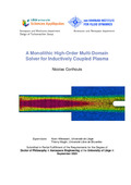 [en] Plasma have an important role in the field of aerospace, more specifically in atmospheric reentry of spacecraft. Indeed, when an object (re)enters an atmosphere at supersonic speed, a shock forms in front of it. This shock converts the kinetic energy of the reentering object by ionizing the gas composing the atmosphere (air on earth), creating a plasma. The latter interacts thermally and chemically with the material. Understanding plasma behaviour is thus of capital importance in the design of spacecraft material. For instance, space shuttles are protected during reentry by thermal protection systems. The latter must be sufficiently resistant for the spacecraft to survive the reentry. On the other hand, when a satellite is decommissioned, it should fall back on earth and completely disintegrate in order to keep a clean spatial environment. Inductively coupled plasma facilities have been created in order to study these interactions. They reproduce the atmospheric reentry by heating a plasma using electric induction. There has been an increasing interest in those facilities in the past decades due to the high purity of the flow they produce and the possibility to run long experimental campaigns. Over the years, the complexity of the experiments performed has also increased. For instance, nozzles are now placed at the exit of the ICP torch in order to study supersonic plasma. More complex geometries are investigated, such as semi-elliptical nozzles for the study of shear flows. Unsteady and turbulent behavior are also studied. New thermal protection systems involving electron transpiration cooling, i.e. the spontaneous emission of electrons from a surface carrying the heat away, are tested. Another example is the study of communication black-out during reentry, and the possible ways to mitigate this phenomenon. Due to the wide variety of configurations encountered in ICP facilities and the possibility to perform measurements in specific locations only, it is difficult to predict the flow features beforehand. Flow prediction is very important before planning an ICP experimental campaign, as the plasma modes could damage the facility. Moreover, predicting the flow correctly saves not only preparation time, but also funds. In this context, numerical solvers have been developed to simulate the ICP flows. The legacy numerical solvers are based upon the finite volume method, demanding a high mesh quality, making this approach very cumbersome for complex geometries. Moreover, these solvers are only axisymmetric, most of them performing computations at local thermodynamic equilibrium and steady state, missing many important physical features of ICP flows. Moreover, they are not robust, as they are based on a staggered solution strategy, converging in thousands of iterations and sometimes requiring to be carefully monitored. In order to address all these issues, we develop in this work the first monolithic multi-domain high order solver for inductively coupled plasma using the hybridized discontinuous Galerkin method. The high-order aspect of the method brings accuracy and mesh flexibility, while the monolithic solution strategy brings robustness to the code.