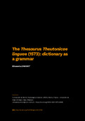 [en] Advocating for a more extensive use of dictionaries in the history of grammaticography, this case study focuses on the earliest alphabetical dictionary explicitly tailored to the needs of non-native speakers of Flemish. The Thesaurus Theutonicae linguae (1573), which predates by a decade the earliest known grammars of Flemish, contains numerous metalinguistic labels and comments dealing with Flemish grammar. Judging by the extent and the detail of metalinguistic information, this dictionary constitutes a remarkable step in the process of grammaticization of Flemish. While inspired by classical (Latin) framework, the metalinguistic analysis displayed in this work also benefits from the Renaissance interest in Greek and from emerging grammar writing in other vernaculars (French). Its foremost originality lies in the very first attempt to explain the functionning of separable complex verbs in Flemish, a grammatical feature that is alien to all three model languages (Latin, Greek, French).