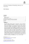 [en] This chapter offers a targeted, macrolevel "need to know" overview of medieval disability scholarship and disability in the Middle Ages. History, art history, literature, and archaeology are all disciplines that count scholars working on issues linked to disability. The main argument I advance is that the common Christian culture operative in the Middle Ages supported the constitution of a pan-European identity, albeit with differences and nuances owing to local and national circumstances. In this context, disability was an intersectional node of identity that "sat beneath" the dominant identity category of Christian. We certainly encounter in the sources people with disabilities who faced numerous personal, daily challenges that sometimes impacted their ability to participate fully in medieval culture. Nevertheless, people with disabilities were not wholly excluded from their communities. In fact, people with disabilities were present in all spheres of medieval society, even playing leading roles, and thus were not inevitably marginalized. This chapter, then, aims to show that we find people with disabilities everywhere in the Middle Ages-if only we look for them.