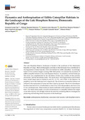 [en] The Luki Biosphere Reserve landscape is located in the southwest of the Democratic Republic of Congo. Illicit anthropogenic activities in this landscape have contributed to the degradation of forest massifs, which are habitats for edible caterpillars. Accordingly, based on five Landsat images covering 2004–2024 period, we analysed the dynamics of edible caterpillar habitats in the Luki Biosphere Reserve, its periphery, and the landscape. The study was complemented by the calculation of class area, number of class patches, dominance, and the disturbance index. The results show that fragmentation and attrition have caused forest areas to decline by 46.13%, 21.17%, and 23.54% in the Reserve, its periphery, and at the landscape level, respectively. The dynamics of caterpillar habitats are reflected in the replacement of forest and fallow land by savannah. The level of disturbance has thus risen from 0.3 to 1.6 in the Reserve, from 2.5 to 13.9 in the periphery, and from 2.0 to 9.2 on a landscape scale. These results are mainly attributed to the expansion of agricultural land. Our observations imply an extent of disturbance in caterpillar habitats that might cause their scarcity, and strongly indicate the need for promoting effective strategies for preserving and restoring forest ecosystems in this landscape.