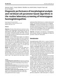[en] [en] OBJECTIVES: The aim of this study was to carry out a cross-analysis of the morphological abnormalities (MA) and the electrophoretic profile (EP) of blood samples suspect for heterozygous haemoglobinopathies (HTZ HGP). Screening for HTZ HGP was based on erythrocyte parameters provided by the Sysmex XN analysers.
