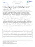 Hughes HR, Ballinger MJ, Bao Y, Bejerman N, Blasdell KR, et al. Summary of taxonomy changes ratified by the International Committee on Taxonomy of Viruses (ICTV) from the Animal dsRNA and ssRNA(−) Viruses Subcommittee, 2025. J Gen Virol 2025;106.