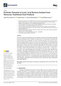 [en] This study assessed the performance and potential use of lactic acid bacteria (LAB) from Moroccan traditional foods as probiotics in animal feed. Five LAB strains Lactiplantibacillus plantarum from whey sourdough, Leuconostoc pseudomesenteroides and Leuconostoc mesenteroides from goat cheese, Enterococcus durans and Lacticaseibacillus casei from fermented milk were isolated and identified by 16S rRNA gene sequencing and MALDI-TOF mass spectrometry. Probiotic traits were evaluated by measuring acid/bile tolerance, cell surface hydrophobicity, emulsifying properties, antimicrobial activity and organic acid production, and safety checked through hemolysis and antibiotic sensitivity tests. L. plantarum, L. casei, and E. durans showed high survival rates after 24 h of culture under acid/bile stress conditions. The surface hydrophobicity of all strains ranged from 14.4 to 39.2%. L. plantarum showed the highest emulsifying capacity (81.4%) and stability (20%) after 24 h. Most strains inhibited pathogenic Staphylococcus epidermidis, Bacillus cereus, and Escherichia coli. Metabolite profiling revealed L. pseudomesenteroides as an interesting butyric acid-producing bacterium and L. plantarum as a remarkable strain releasing high content of organic acids. Their antibiotic susceptibility and non-hemolytic nature support their safety and potential use as feed additives.