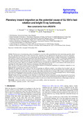 [en] Context. The discovery of an increasing variety of exoplanets in very close orbits around their host stars raised many questions about how stars and planets interact and to what extent host stars’ properties may be influenced by the presence of close-by companions. Understanding how the evolution of stars is impacted by the interactions with their planets is indeed fundamental to disentangling their intrinsic evolution from star-planet-interaction (SPI) induced phenomena. In this context, GJ 504 is a promising candidate for a star that underwent strong SPI. Its unusually short rotational period (Prot ∼ 3.4 days), while being in contrast with what is expected of single-star models, could result from the inward migration of a close-by, massive companion (Mpl ≥ 2 MJ), pushed towards its host by the action of tides. Moreover, its brighter emission in the X-ray luminosity may hint at a rejuvenation of the dynamo process sustaining the stellar magnetic field, which is a consequence of the SPI-induced spin-up. Aims. We aim to study the evolution of GJ 504 and establish whether by invoking the engulfment of a planetary companion we can better reproduce its rotational period and X-ray luminosity. Methods. We simulated the past evolution of the star by assuming two different scenarios: ‘star without close-by planet’ and ‘star with close-by planet’. In the second scenario, we use our SPI code to investigate how the inward migration and eventual engulfment of a giant planet driven by stellar tides may spin-up the stellar surface and rejuvenate its dynamo. We compare our theoretical tracks with archival-rotational-period and X-ray data of GJ 504 collected from the all-sky surveys of the ROentgen Survey with an Imaging Telescope Array (eROSITA) on board the Russian Spektrum-Roentgen-Gamma mission (SRG). Results. Despite the large uncertainty on the stellar age, we find that the second evolutionary scenario characterised by the inward migration of a massive planetary companion is in better agreement with the short rotational period and the bright X-ray luminosity of GJ 504; thus, it strongly favours the inward migration scenario over the one in which close-by planets have no tidal impact on the star.