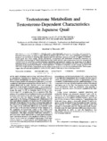 [en] In 2 independent experiments, we measured and correlated in maturing male Japanese quail the individual variations in sexual and aggressive behavior, cloacal gland size, testes weight, plasma testosterone concentrations and intracellular testosterone metabolism by hypothalamus and cloacal gland. Cloacal gland area was only weakly related to plasma testosterone levels but was positively correlated with the production of active androgenic metabolites and negatively related to the production of 5 beta-reduced androgens (inactive) in the glandular tissue. Several measures of behavior were correlated with aspects of the testosterone metabolism in the anterior hypothalamus. In both experiments, the behavior of the birds was also strongly correlated with their testes weight and their cloacal gland area but weakly or not at all with their plasma testosterone levels. These studies suggest that testosterone metabolism is involved in the control of hormone action in maturing animals.