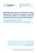 ![]() | Kofler, G., Garcia Prats, A., Haslehner, W., Kemmeren, E., Lang, M., Nogueira, J. O. L., Raventós-Calvo, S., Richelle Graulich, I., & Rust, A. (28 October 2025). Withholding Taxes, Losses and Territoriality – Opinion Statement ECJ-TF 3/2025 on the Decision of the CJEU of 19 December 2024 in Credit Suisse Securities (Europe) Ltd v. Diputación Foral de Bizkaia Case (C-601/23). European Taxation, 65 (11). doi:10.59403/2s3gznf Peer Reviewed verified by ORBi |