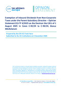 ![]() | Kofler, G., Prats, A., Haslehner, W., Kemmeren, E., Lang, M., Nogueira, J. O. L., Raventós-Calvo, S., Richelle Graulich, I., & Rust, A. (31 December 2025). Exemption of Inbound Dividends from Non-Corporate Taxes under the EU Parent-Subsidiary Directive – Opinion Statement ECJ-TF 4/2025 on the Decision of the CJEU of 1 August 2025 in Banca Mediolanum (Joined Cases C-92/24 to C-94/24). European Taxation, 66 (1), 3-7. doi:10.59403/26bxx3k Peer Reviewed verified by ORBi |
