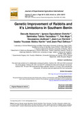 ![]() | Assouma, D., Dotché, I. O., Yacoubou, S. T., Akpo, Y., Judicael, G., Hornick, J.-L., Karim, I. Y. A., & Dehoux, J.-P. (09 April 2025). Genetic Improvement of Rabbits and It's Limitations in Southern Benin. Journal of Experimental Agriculture International, 47 (4), 60-74. doi:10.9734/jeai/2025/v47i43357 Peer reviewed |